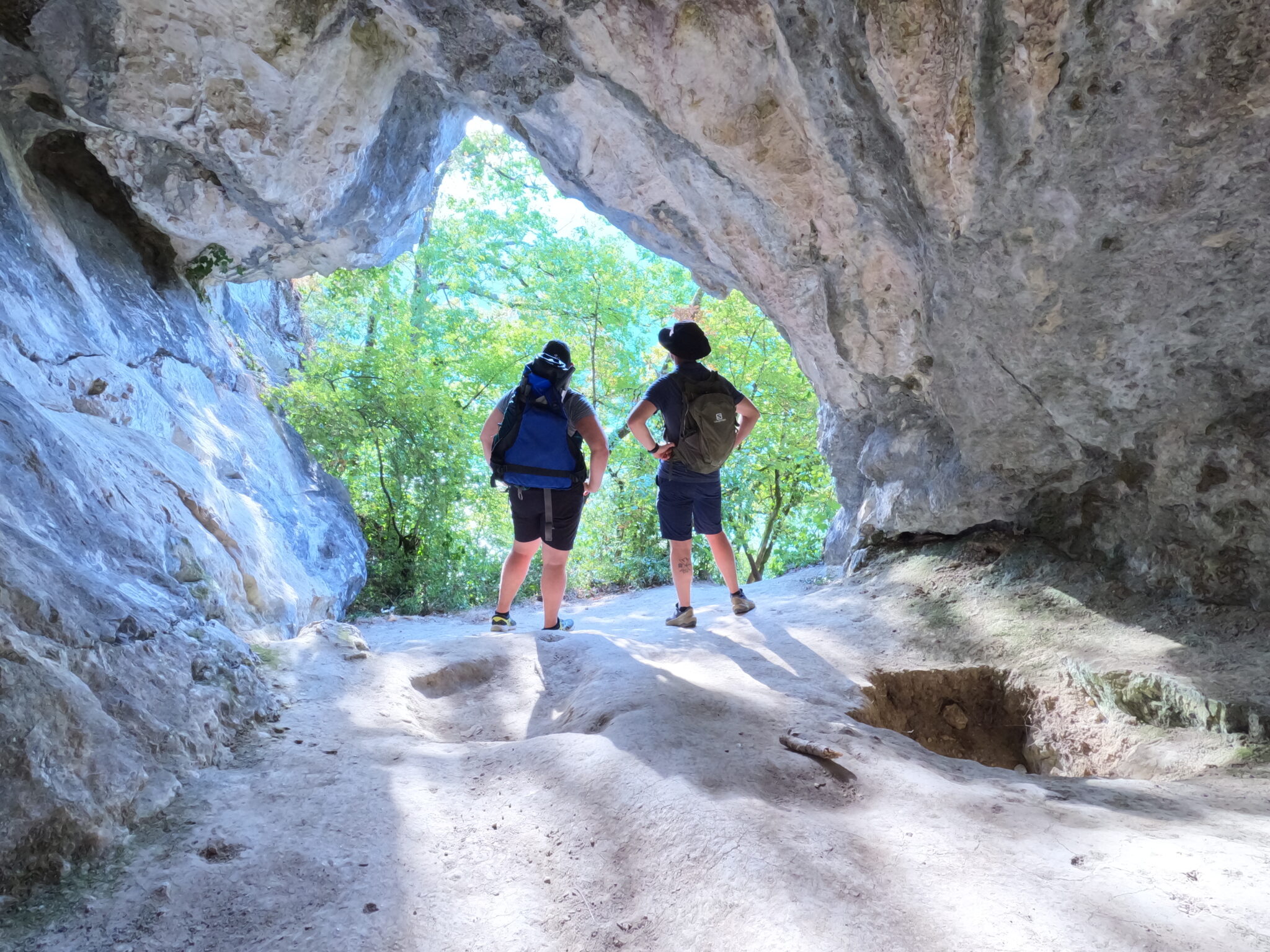 D’abord, sac et packraft sur le dos, nous traversons à pied la réserve naturel du Roc de Chère sur des chemins accessibles. Entre Menthon Saint Bernard et Talloires, cette petite montagne boisée et préservée, offre des points de vue panoramique sur le Lac d’Annecy ainsi qu’un accès « secret » à sa rive. A l’aide d’un sac de gonflage, nous remplissons nos packrafts. Une fois cette mission réussie, nous sommes prêt pour embarquer !